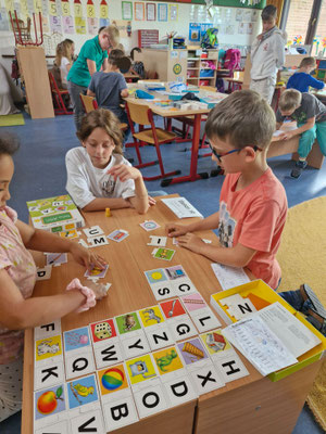 Mit viel Freude und Begeisterung feierten die Erstklässler der Grundschule Burghaslach ihr Buchstabenfest. Nach der Einstimmung auf das Fest mit einem Bilderbuch und selbstgebackenem „Buchstabengebäck“ durchliefen die Schülerinnen und Schüler an verschiedenen Stationen spielerisch und kreativ die Welt der Buchstaben. Ob Buchstaben erlaufen, erfühlen, kneten oder auf dem Geobrett spannen – jede Station forderte andere Sinne und Fähigkeiten. Auch erste Schreibversuche in Form von kleinen Wörtern durften nicht fehlen. Besonders schön war, dass die Drittklässler als Helferinnen und Helfer dabei waren und die Erstklässler tatkräftig unterstützten. Einige Kinder hatten sogar eigene Buchstabenspiele mitgebracht, die sie stolz ihren Mitschülern präsentierten. Zum Schluss wurden alle Kinder als Buchstabenkönigin oder -könig gekrönt und können nun stolz behaupten alle Buchstaben zu beherrschen.