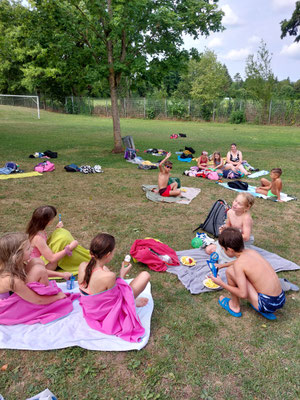 Ganz herzlichen Dank an alle Eltern, die uns unterstützt haben, sowie an die Anwesenden der Nachbarschaftshilfe. Ohne diese Hilfe wäre ein Schwimmbadaufenthalt mit fast 100 Kindern gar nicht möglich gewesen.