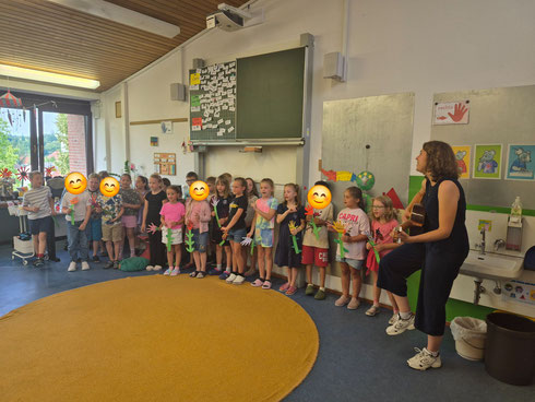 Anfang Juli stand ein besonderer Besuch an: Die Vorschulkinder aus den umliegenden Kindergärten haben unsere Schule besucht und erste Eindrücke vom Schulleben gesammelt. Neugierig und ein bisschen aufgeregt erkundeten sie das Schulhaus und lernten einige ihrer zukünftigen Lernorte kennen. Anschließend wurden die Kinder von ihren zukünftigen "Paten", den jetzigen Erstklässlern, herzlich in Empfang genommen. Mit einem fröhlichen Begrüßungslied und einer selbstgebastelten Blume wurde jedem Vorschulkind ein ganz persönlicher Willkommensgruß überreicht. Danach durften alle gemeinsam Pause auf dem Schulhof machen und sich besser kennenlernen. Wir freuen uns schon sehr darauf, euch bald wiederzusehen – beim ersten Schultag als neue Erstklässler unserer Schulgemeinschaft!
